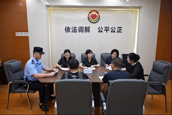 “感谢综治中心,漏水纠纷已经解决,邻里关系没有受到影响。” 2025年3月,一起因房屋漏水引发的邻里纠纷被移送至武昌区综治中心。置于中央的法官用“咵天”术了解情况,耐心厘清责任。最后,王某主动付款,双方握手言和。