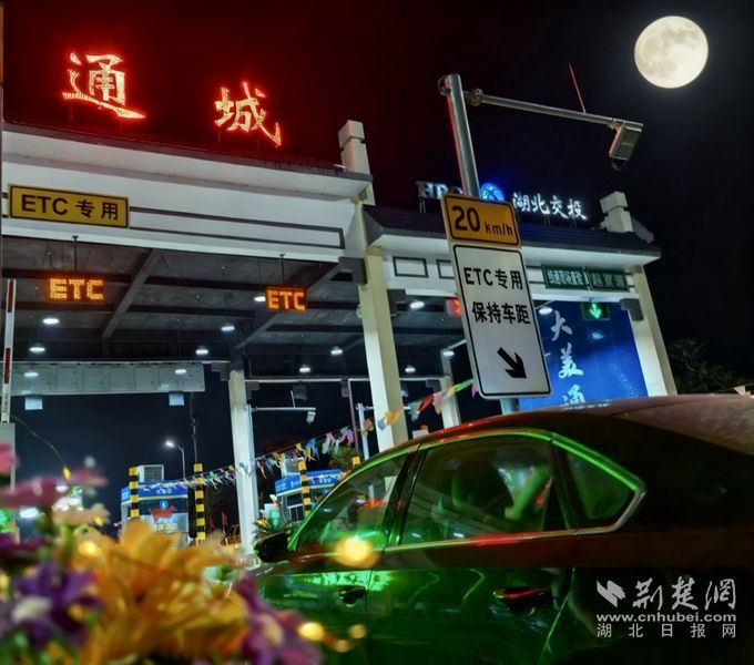 荆楚网(湖北日报网)消息(通讯员:徐盛)10月6日晚,杭瑞高速公路桐城收费站天花板上的“月亮灯”准时点亮,把整个月亮调到了天空。精心设计的光影,是湖北交通人应对双节高峰的热门注脚——既保证道路畅通,又传递回程的温暖与舒适。